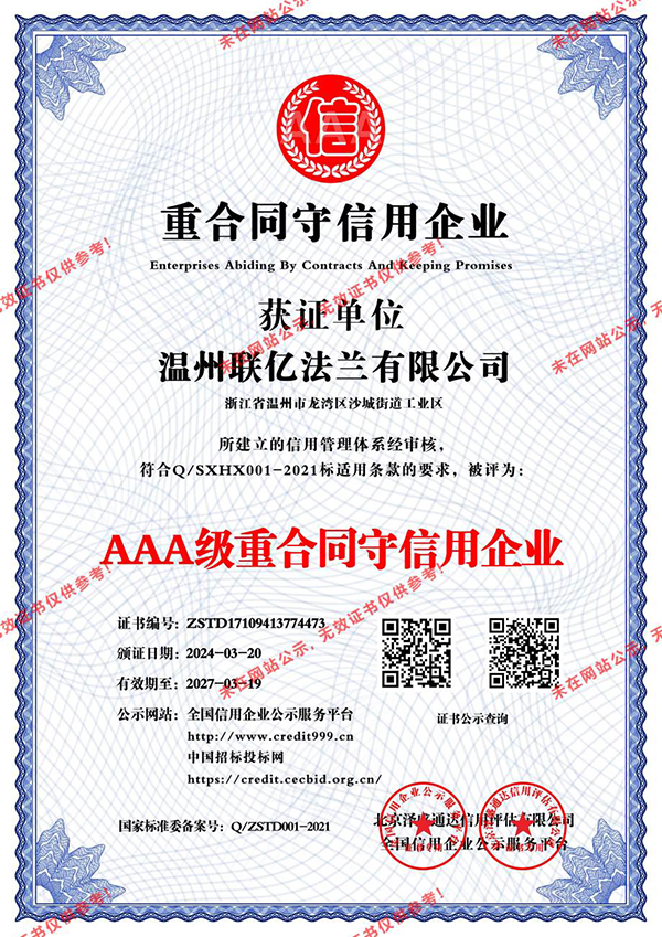 AAA級重合同守信用企業